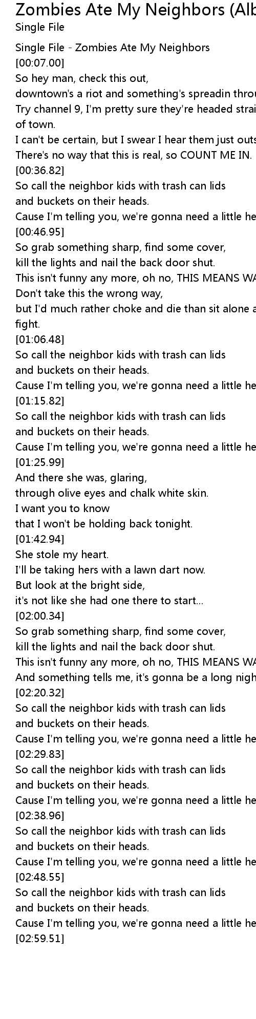 Single File - Zombies Ate My Neighbors |