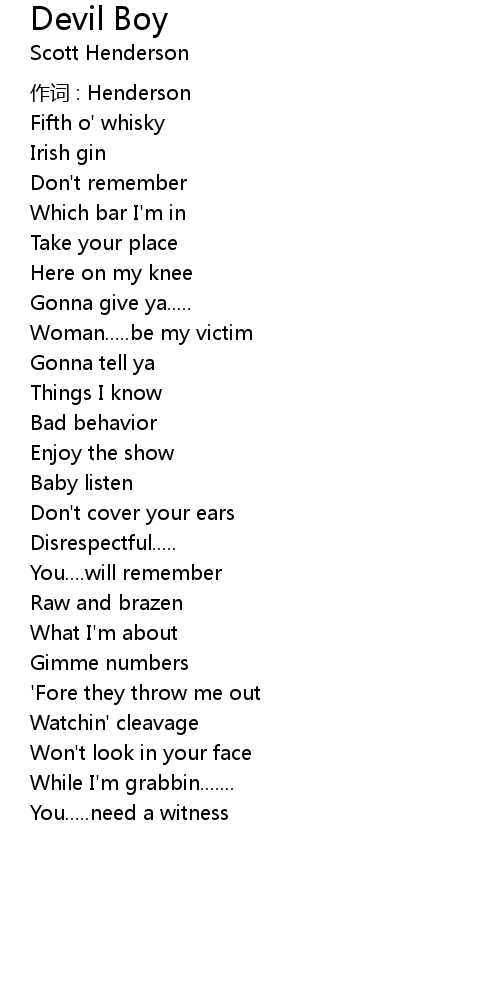 | 作词 : Henderson | |