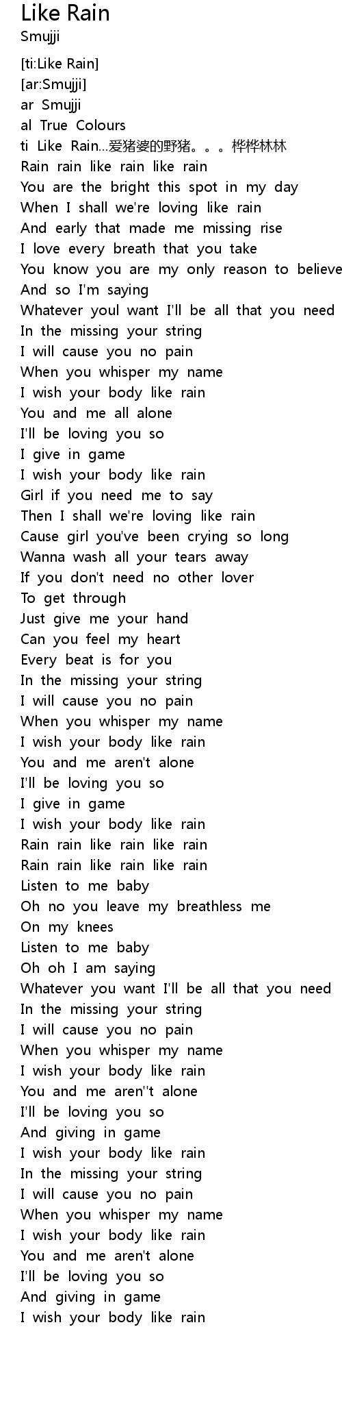 | [00:04.168]ti Like Rain...爱猪婆的野猪。。。桦桦林林] | |