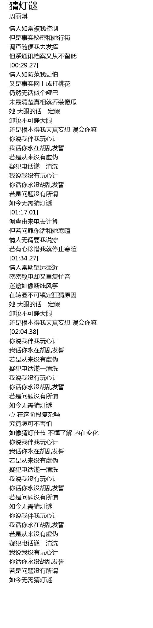 | [02:32.32] | 如像猜灯佳节 不懂了解 内在变化 |