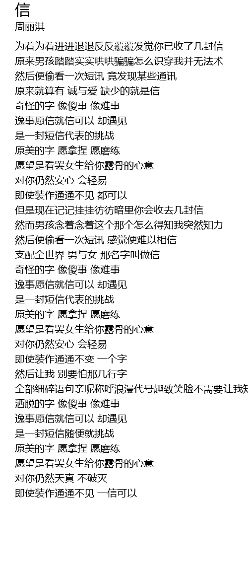 | [00:16.230] | wéi zhe wéi zhe jìn jìn tuì tuì fǎn fǎn fù fù fā jué nǐ yǐ shōu le jǐ fēng xìn |