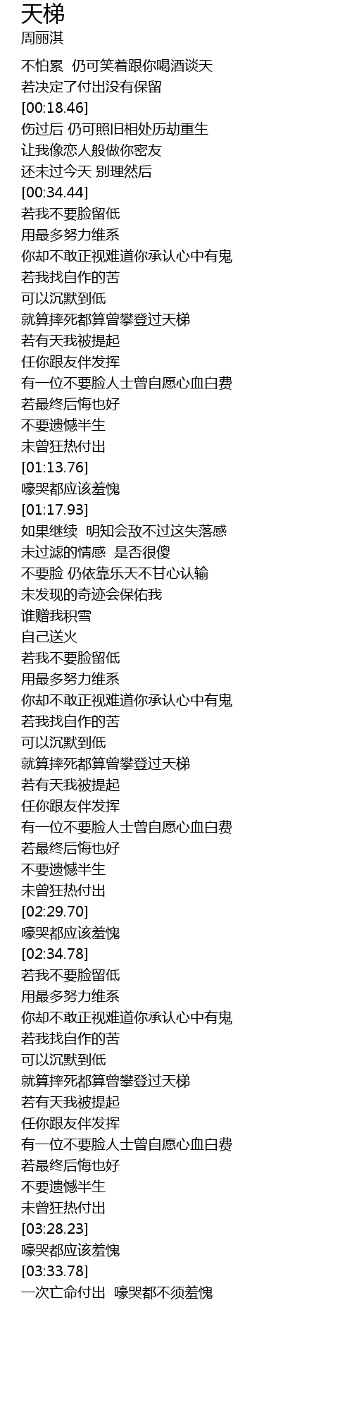 | [03:34.55] | yī cì wáng mìng fù chū háo kū dōu bù xū xiū kuì |