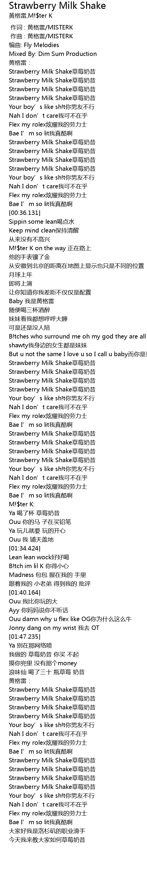 | [00:34.022] | Flex my rolex xuàn yào wǒ de láo lì shì |