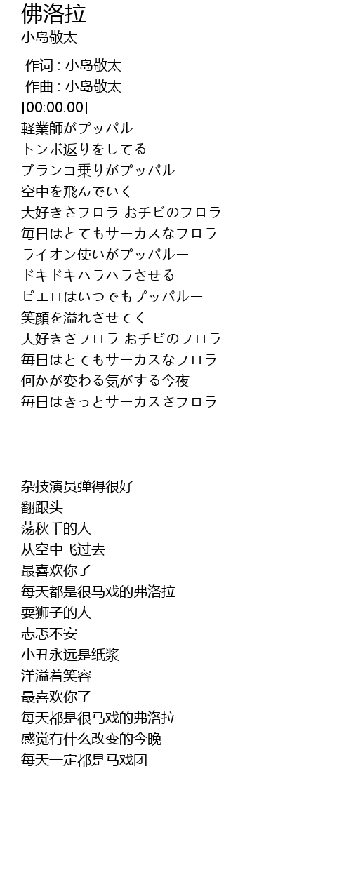 | [00:41.71] | 大好きさフロラ おチビのフロラ |