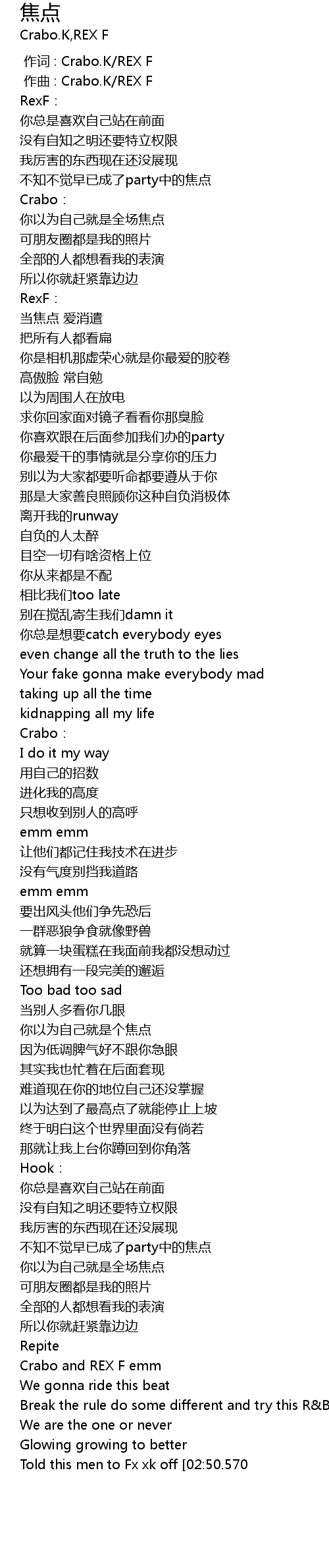 | [00:00.000] | 作词 : Crabo.K/REX F |