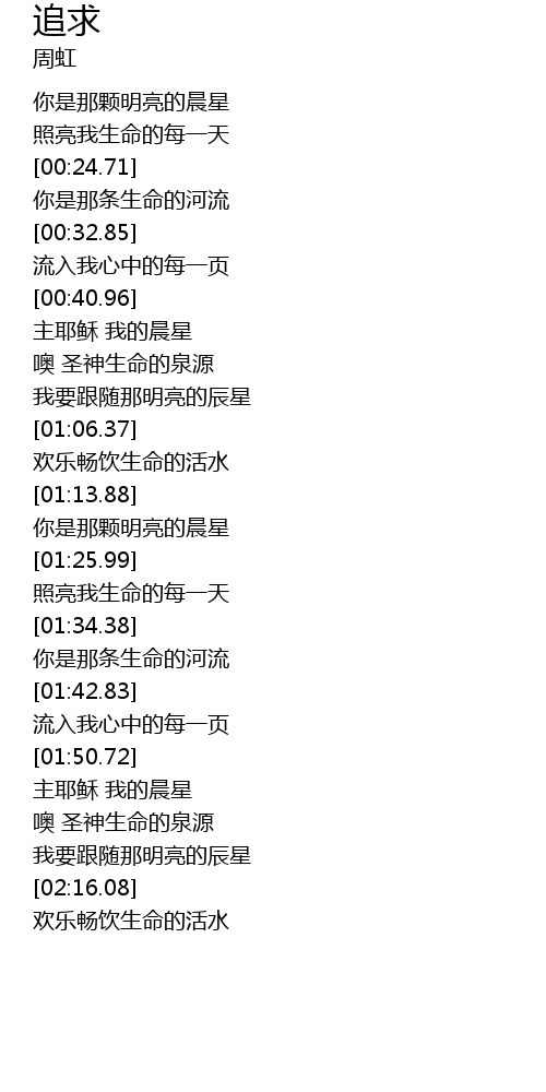 | [00:59.61] | 我要跟随那明亮的辰星 |
