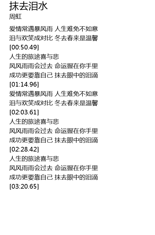 | [03:11.13] | 成功更要靠自己 抹去眼中的泪滴 |