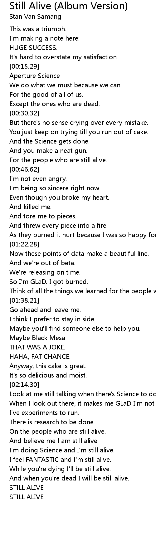 I'm doing Science and I'm still alive. |