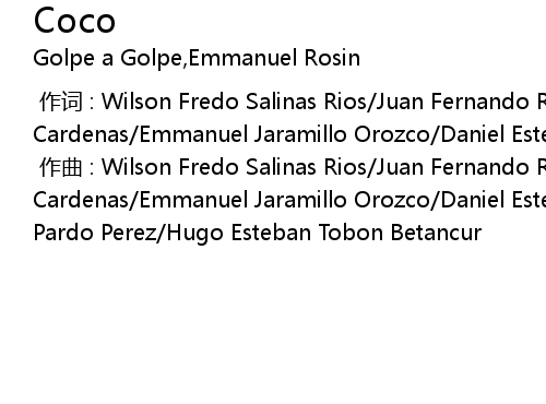 | [00:00.00-1] | 作曲 : Wilson Fredo Salinas Rios/Juan Fernando Restrepo Cardenas/Emmanuel Jaramillo Orozco/Daniel Esteban Calle Escobar/Jorge Armando Pardo Perez/Hugo Esteban Tobon Betancur |
