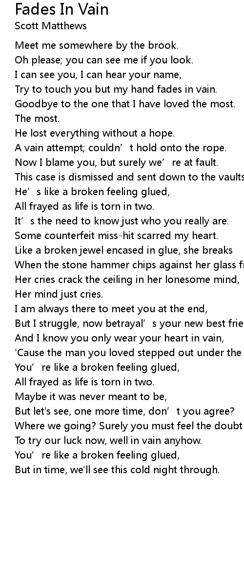 | You' re like a broken feeling glued, | |