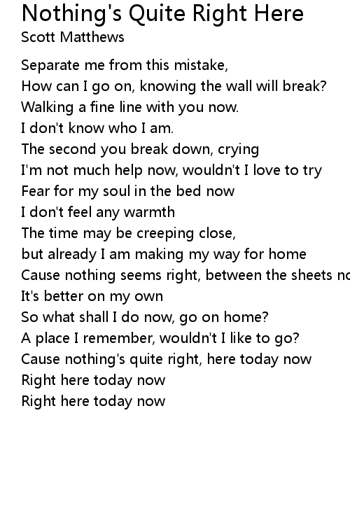 Cause nothing's quite right, here today now |