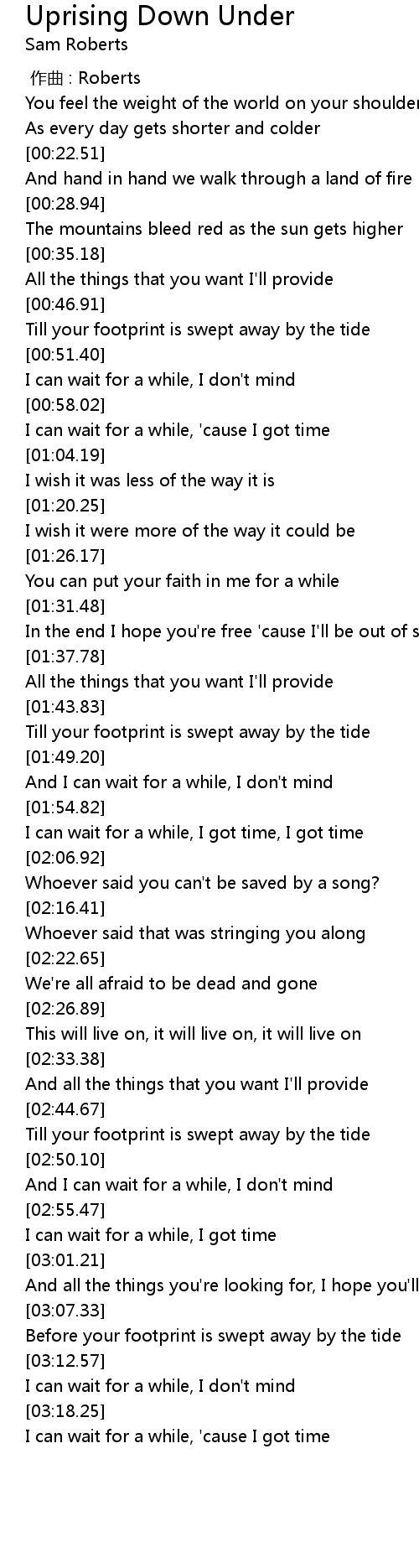 | [03:19.43] | I can wait for a while, 'cause I got time |
