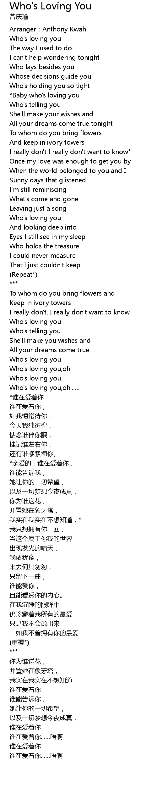 | *亲爱的,谁在爱着你, | |