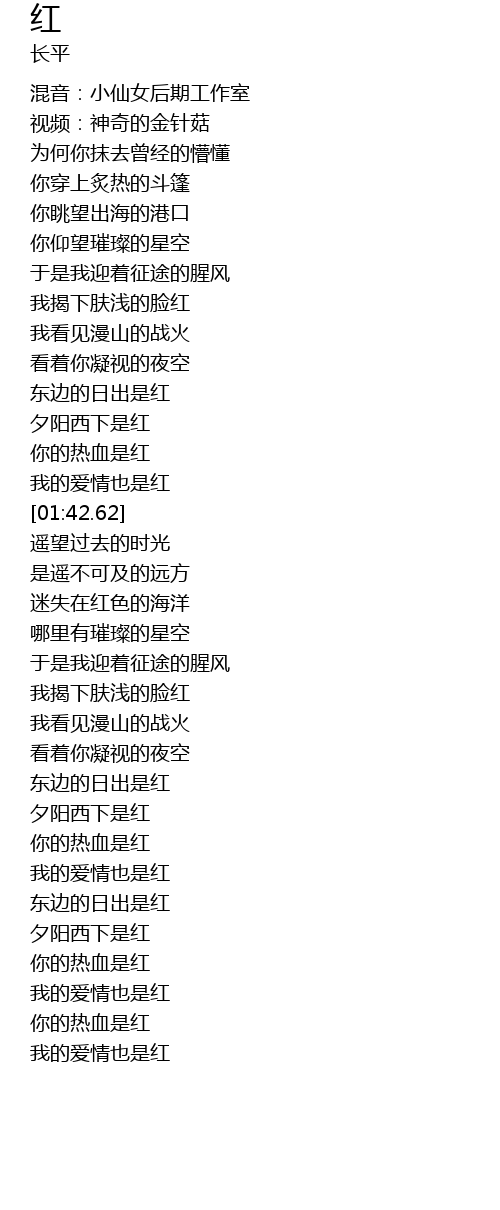 | [00:16.00] | 混音:小仙女后期工作室 |