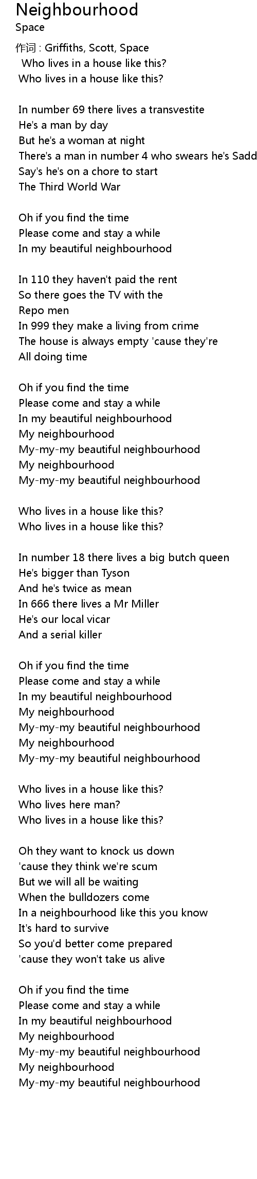 | In my beautiful neighbourhood | |
