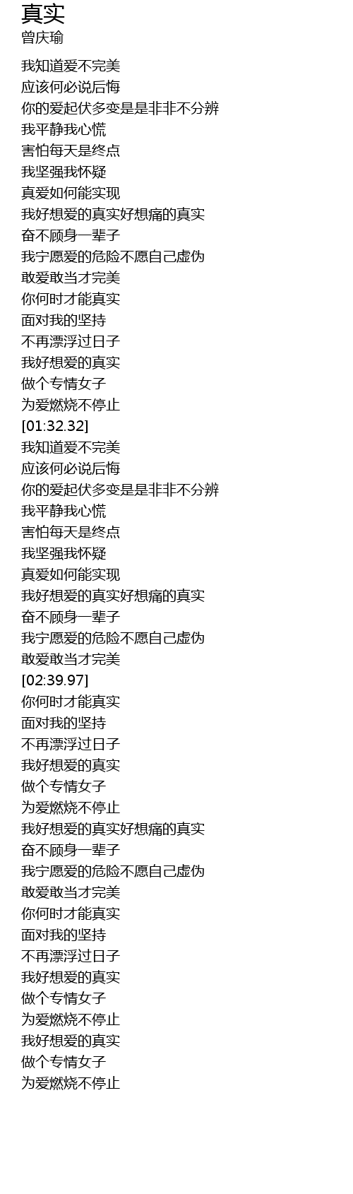 | [03:40.60] | 我好想爱的真实 |