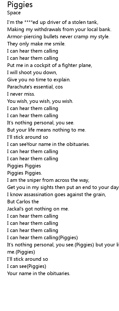 It's nothing personal, you see.(Piggies) but your life means nothing to me.(Piggies) |