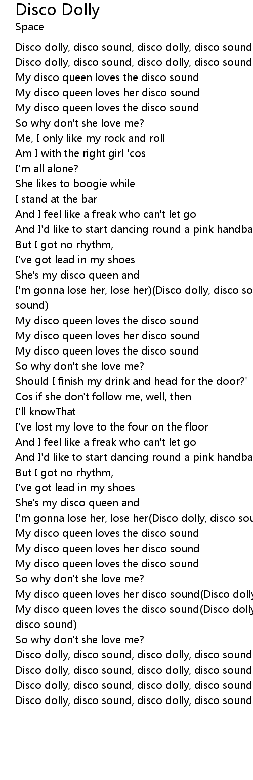 My disco queen loves her disco sound(Disco dolly, disco sound) |