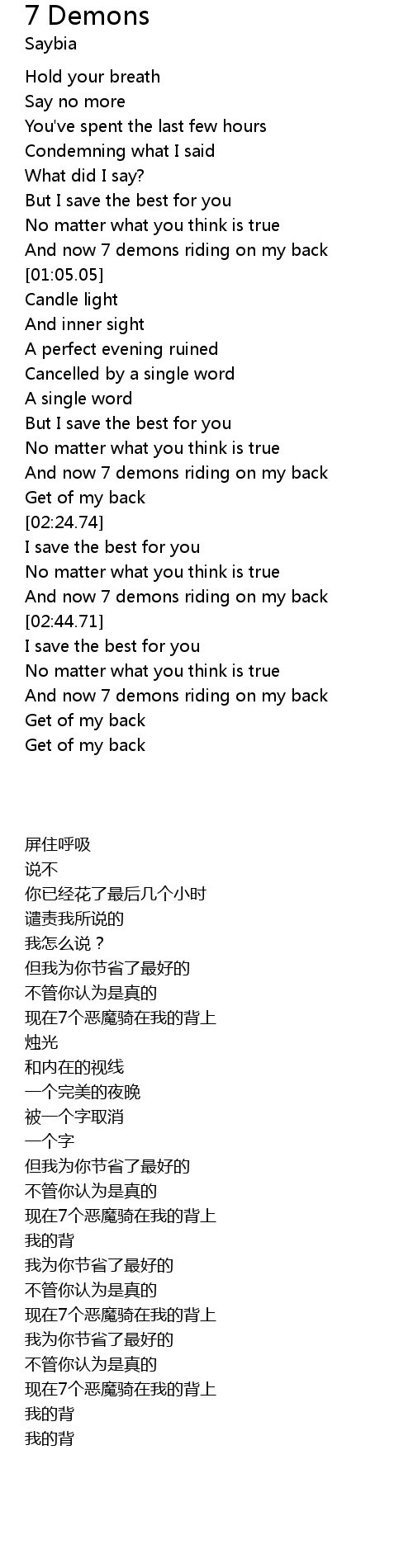 And now 7 demons riding on my back |