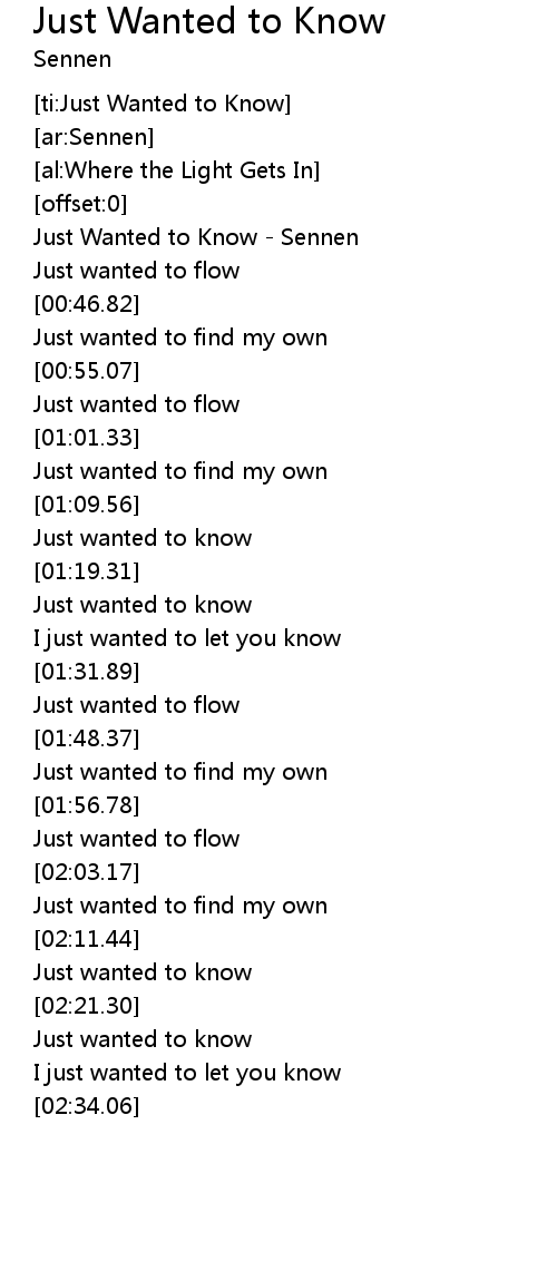 [ti:Just Wanted to Know] |