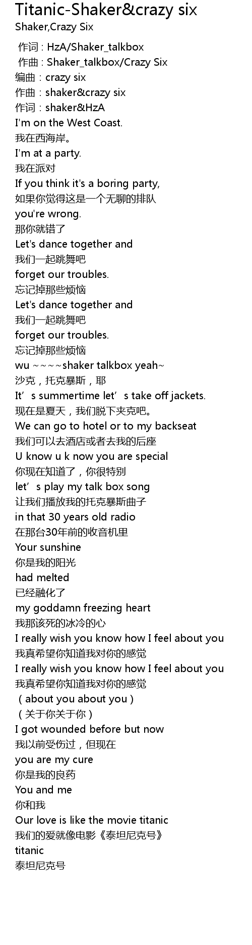 | [00:01.190] | zuo qu: shaker crazy six |