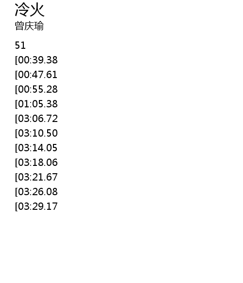 | [03:40.87][03:06.72][01:18.08] | 我是火 冷冷火 |