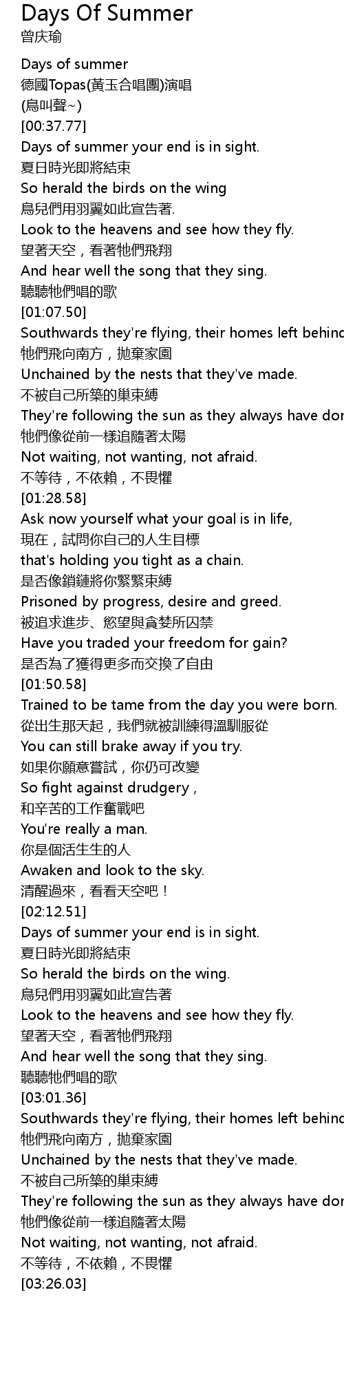 | [00:48.00] | Days of summer your end is in sight. |