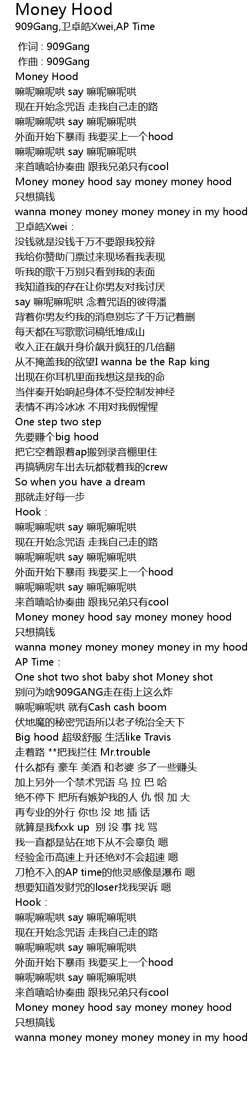 | [01:45.520] | Big hood 超级舒服 生活like Travis |