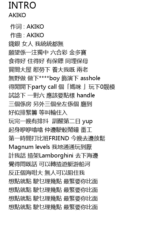 | [00:01.000] | zuo qu : AKIKO |
