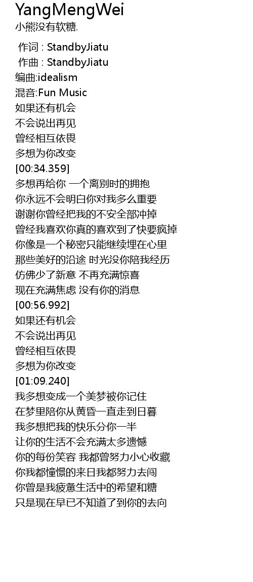 | [00:01.000] | zuo qu : StandbyJiatu |