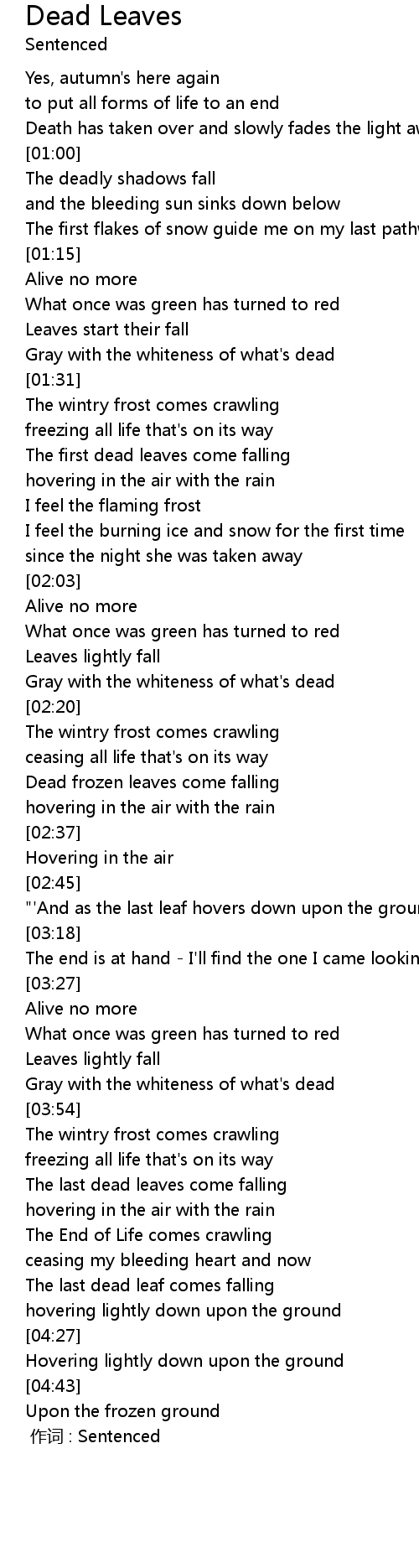 | [01:09] | The first flakes of snow guide me on my last pathway |