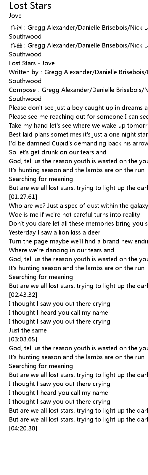 | [03:24.72] | But are we all lost stars, trying to light up the dark? |