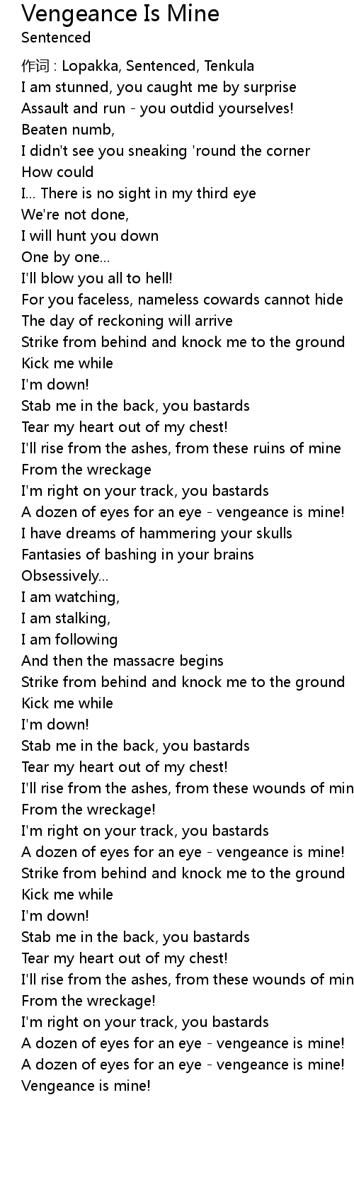 | Song | Vengeance Is Mine |