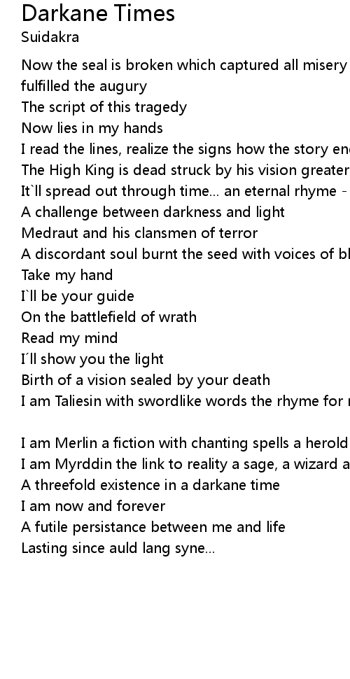 | I am Taliesin with swordlike words the rhyme for reason and truth against the world [Solo: Arkadius] | |