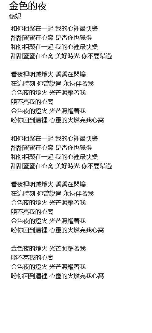 | 金色夜的燈火 光芒照耀著我 | |