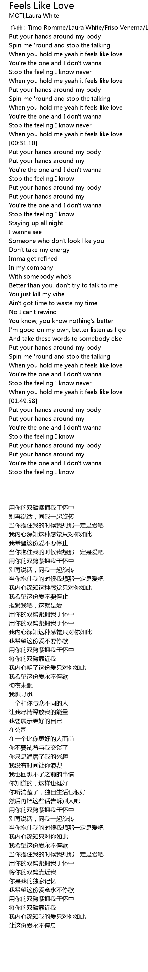 | [00:27.33] | When you hold me yeah it feels like love |