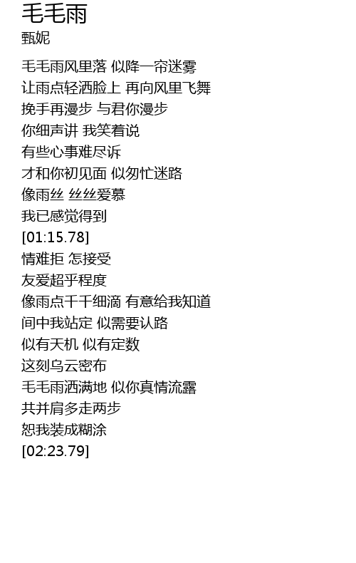 | [02:07.89] | 毛毛雨洒满地 似你真情流露 |