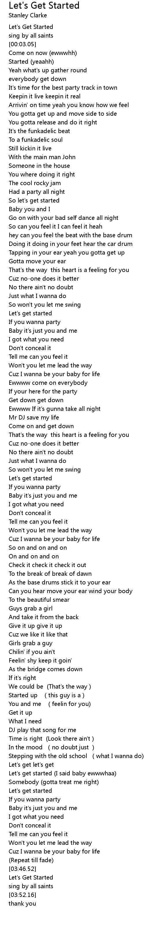 | [03:13.17] | Let's get started (I said baby ewwwhaa) |