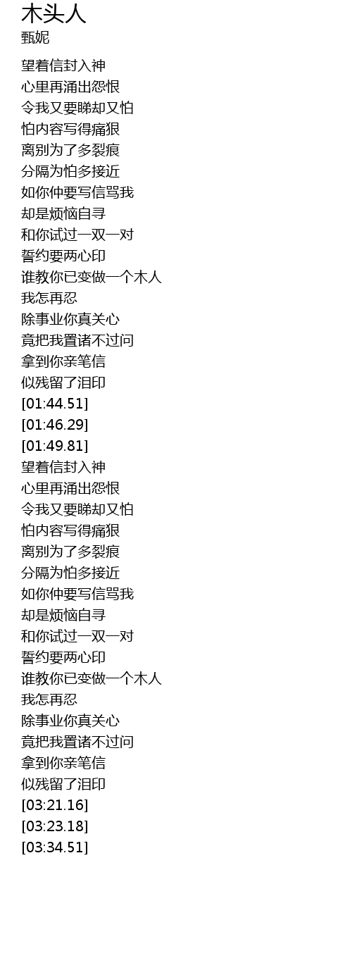 | [01:12.02] | shuí jiào nǐ yǐ biàn zuò yí gè mù rén |