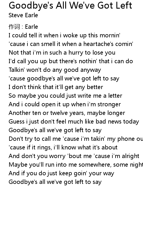 | ' cause goodbye' s all we' ve got left to say | |