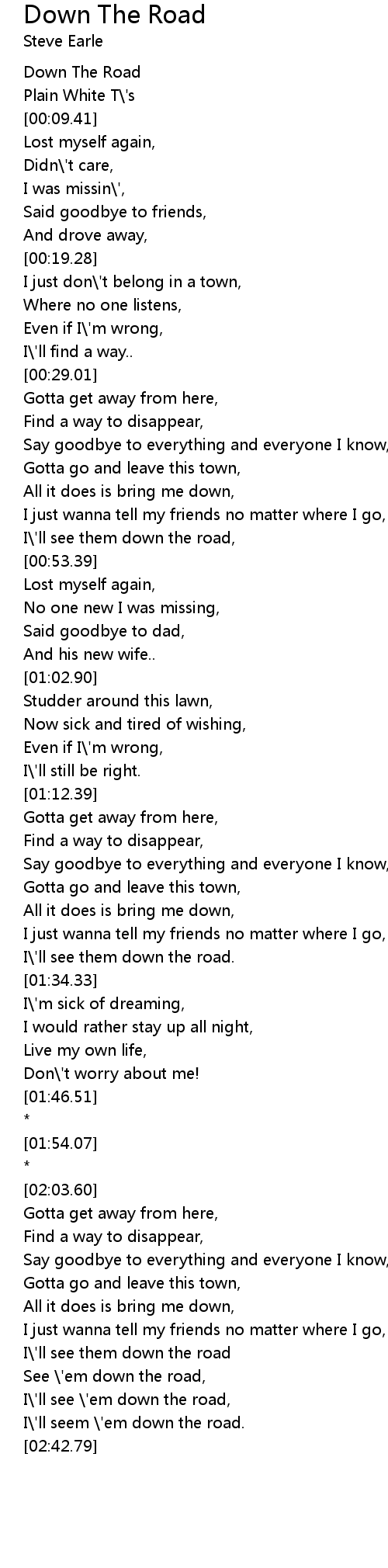 I\'ll see them down the road, |