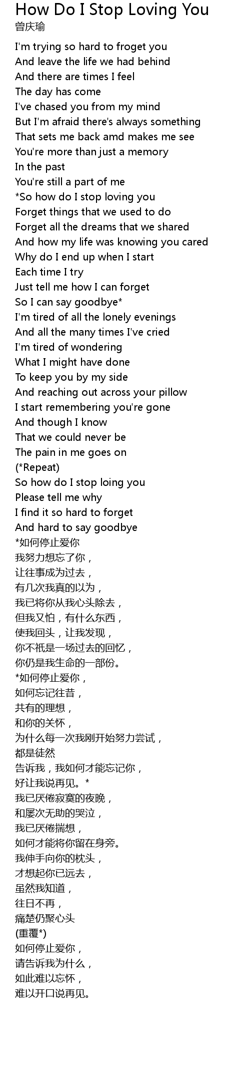 | *如何停止爱你, | |