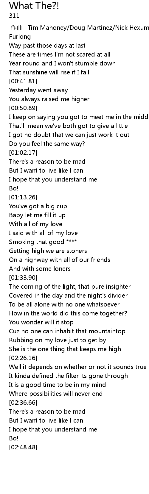 | [00:52.42] | I keep on saying you got to meet me in the middle |