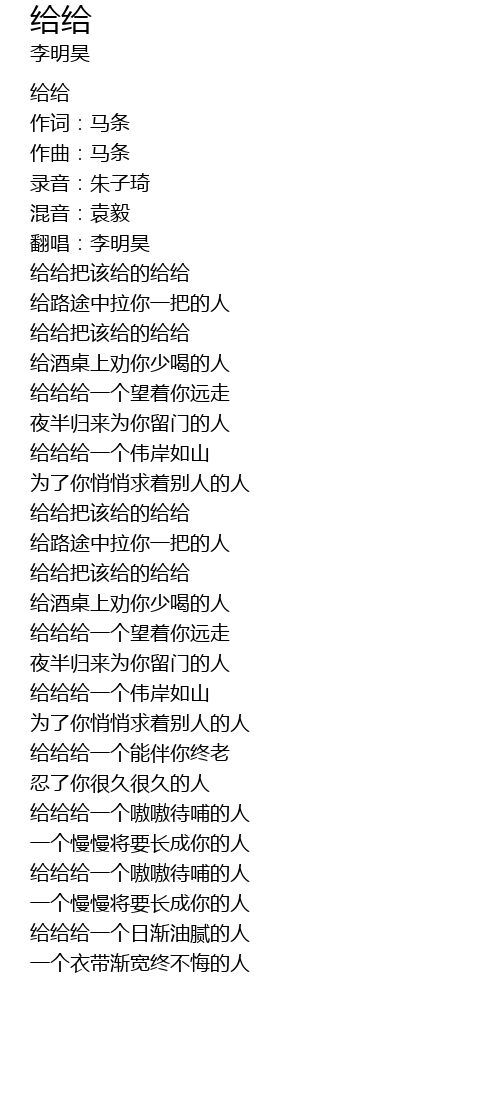 | [03:28.125] | 给给给一个日渐油腻的人 |