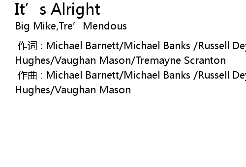 | [00:00.00-1] | zuò cí : Michael Barnett Michael Banks Russell Deyo Duane Hughes Vaughan Mason Tremayne Scranton |