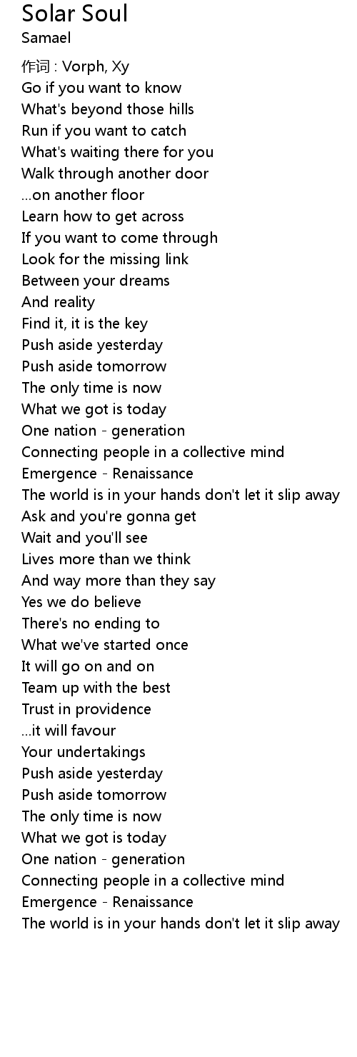 | Song | Solar Soul |
