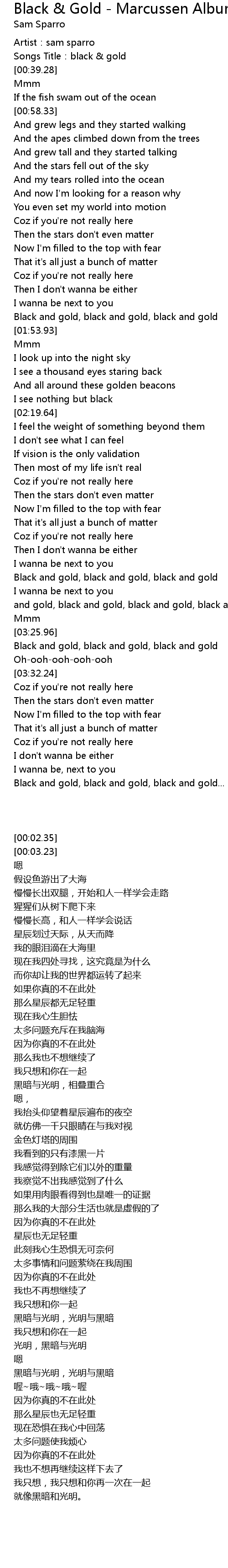 | [00:03.23] | Songs Title:black & gold |