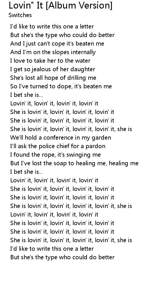 Lovin' it, lovin' it, lovin' it, lovin' it |