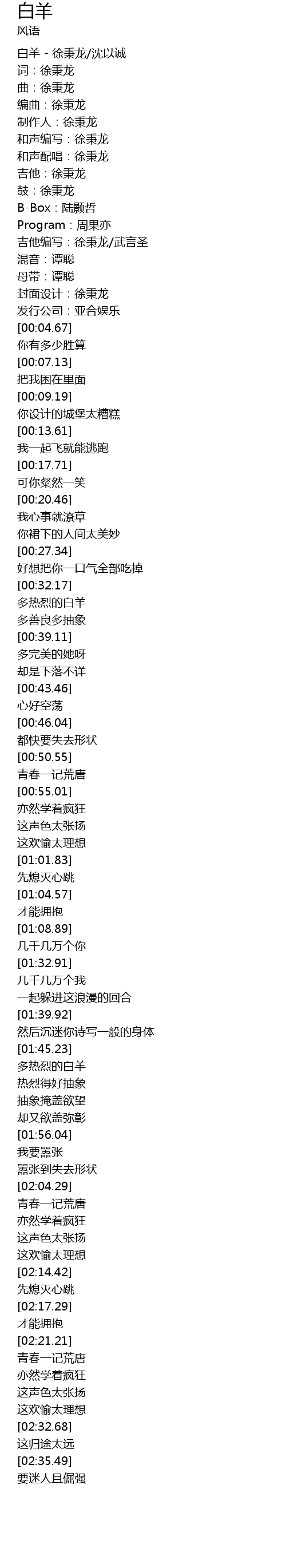 | [00:00.61] | 白羊 - 徐秉龙/沈以诚 |