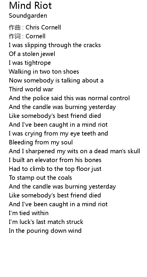 | And I've been caught in a mind riot | |